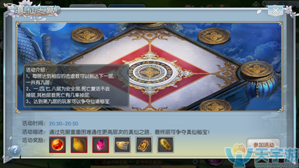 3、达到第九层的玩家可以争夺仙道秘宝。