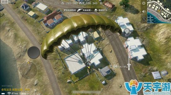快速开伞以它最快的开伞速度,以及最短的降落时间,而备受各阶大神的喜爱,并且也适宜标记点较近的降落方式。当“击友”从飞机中跳出后,为了以最短的时间降落地面,大家就要采用减少风阻的方式,提升开伞前的下降速度。“击友”在跳伞后,选择按住“上”方向键,则自己的身体会以几乎垂直向下的方式降落,从而在达到强制开伞条件时,开伞时的下降速度达到最大,开伞瞬间的速度可达到150千米/小时左右。相比于低速开伞方式,在同时起跳的条件下,能够提前20-40秒降落到预定目标处。20-40秒的时间,足够“击友”收集到身边的武器,并选择到一个更好的射击姿态和掩体作好伏杀准备。快速开伞方式,会以最短的滑翔距离落地,因此,大家选择的降落目标不易太远。同时快速开伞方式,更适合大神级高手们第一时间搏杀使用。
