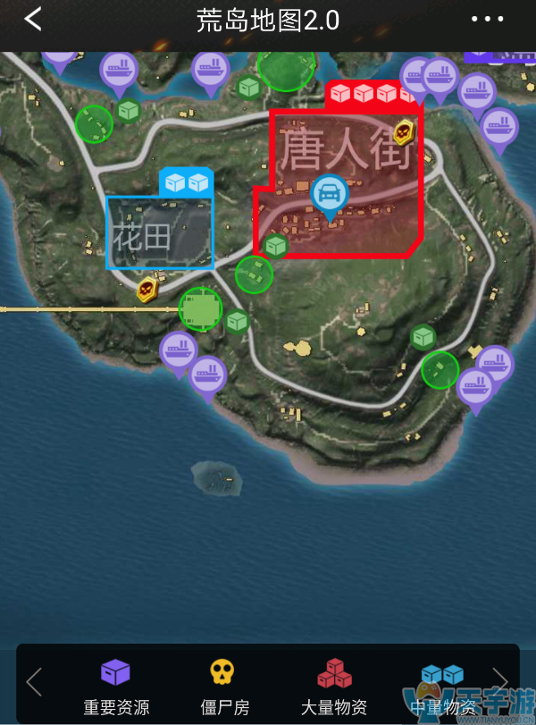 唐人街:唐人街的装备还是很好的,就是平时去的人比较多,不过掩体比较多,不容易GG,离北部的大陆也是比较近,降落在东南大岛的首选。
