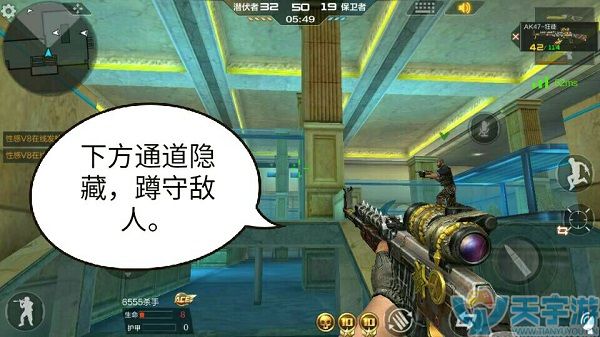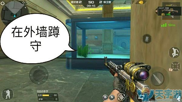 水族馆这个地图是比较有趣的,透明的玻璃使你可以看清敌人的动向,但却又不能穿透玻璃大到敌人。水族馆的进攻路线可分为两条。而且还有着两个狙击点。