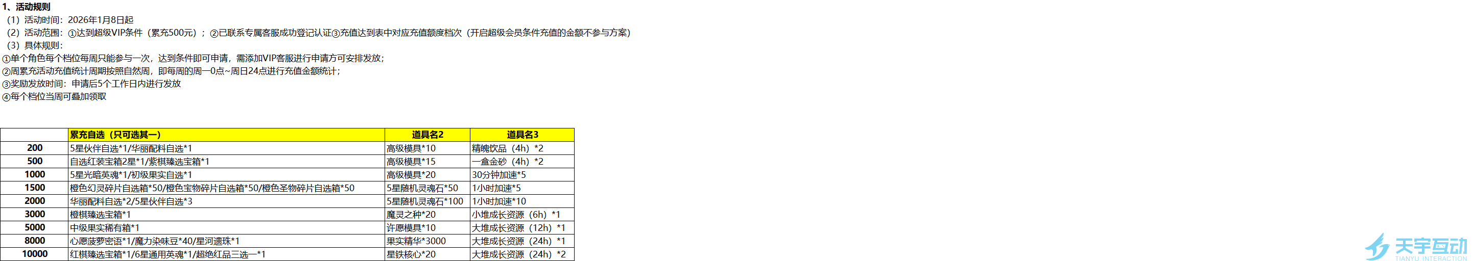 新服活动的介绍开服第1-7天【限时活动】升星豪礼:满足英雄升星数量即可获得对应奖励甜度选拔赛:活动期间提升战力获得奖励新手补给:超高折扣礼包,新手期间遥遥领先累充赠礼:活动期间累充达标即可领取奖励 【开服庆典】七日悬赏:每日完成任务领奖英雄挑战夏日清凉:免费获得1个神话英雄【清风雪碧】缔结契约:完成任务免费获得1个神话英雄【清风雪碧】累天充值英雄集结 开服第2-7天【工匠喵喵的补给商店】交付多余的生产材料兑换货币,货币可以兑换生产材料,还可以抽奖获得资源 活动噱头、福利噱头上线豪送千抽、登录即送神话级英雄6元获得神话英雄【星凝】,附赠气泡框和头像框 系统介绍——幻灵庇护所上阵幻灵和英雄一样,都是可以上阵战斗的,一共可以上阵4个幻灵,战斗中幻灵的选择也是十分重要的。 上阵幻灵的顺序决定了在回合前释放技能的顺序。建议优先上阵给敌方施加伤害的幻灵,如:怨灵构造体、电击河豚、攻城堡垒(可以概率叠加眩晕硬控对方~)。其次可以上阵一些恢复我方生命值的“奶妈”幻灵,如:生命扑翼 召唤 每天都有免费召唤次数和钻石召唤次数,建议直接撸满。购买【幻灵特权】可以开启幻灵抽奖,增加心愿红色幻灵概率,还可以增加钻石抽取次数,减少钻石消耗。 魔灵之种是抽幻灵的材料,可以通过购买幻灵特权、参与领主讨伐、福利-钻石福利礼包购买、充值-每周礼包购买获得~ 羁绊解锁羁绊图鉴可以对上阵英雄的属性增加噢 分解部分幻灵升满后额外获得的碎片可以到分解页面进行分解获得幻灵精华,幻灵精华可以升级庇护所等级 庇护所庇护所获得的属性会加成给所有英雄;消耗幻灵精华和金币可以提升庇护所等级。幻灵精华主要通过分解幻灵碎片、幻灵副本获得;庇护所进阶不仅可以获得基础属性,达到指定阶数时还可以提升幻灵属性转化率和攻击/生命百分比属性加成。到达对应等级时会解锁上阵幻灵槽位 上阵的幻灵参与战斗,其他获得的幻灵会为庇护所提供额外的属性加成每回合开始前仅有一只幻灵释放技能,释放技能顺序按照上阵槽位顺序。如果开锁槽位没有上阵幻灵也将会占据一个回合噢,建议大家都放满呢。